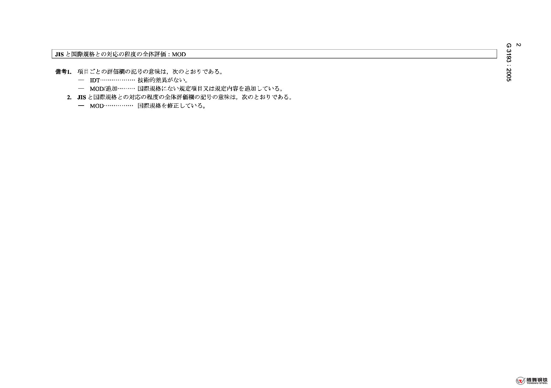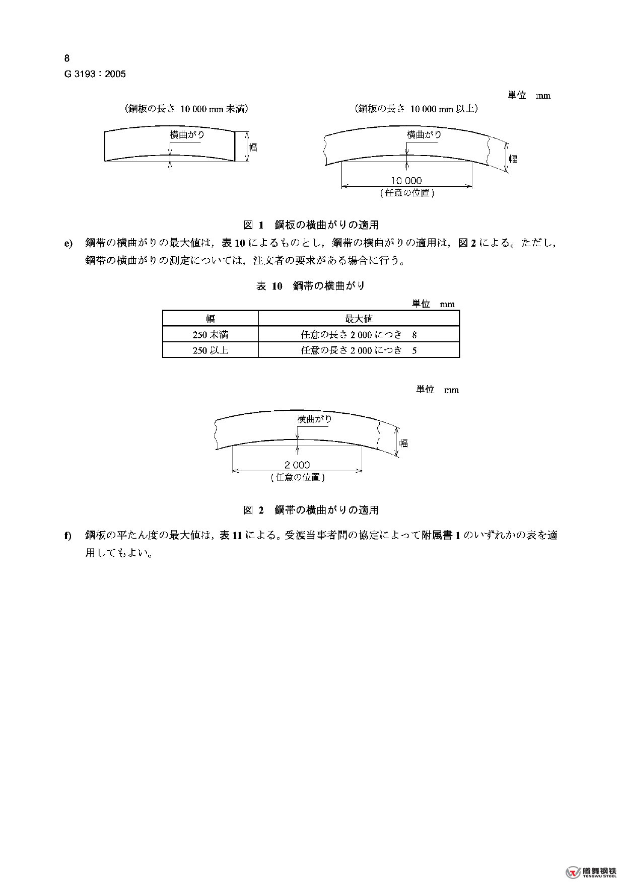 JIS G 3193-2005 熱軋鋼板和鋼帶公差