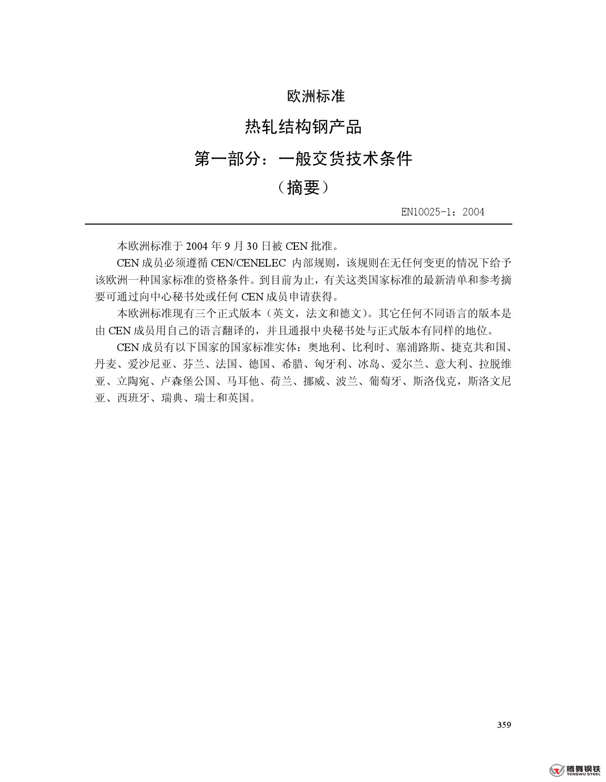 熱軋結(jié)構(gòu)鋼產(chǎn)品 第一部分:一般交貨技術(shù)條件 EN10025-1:2004