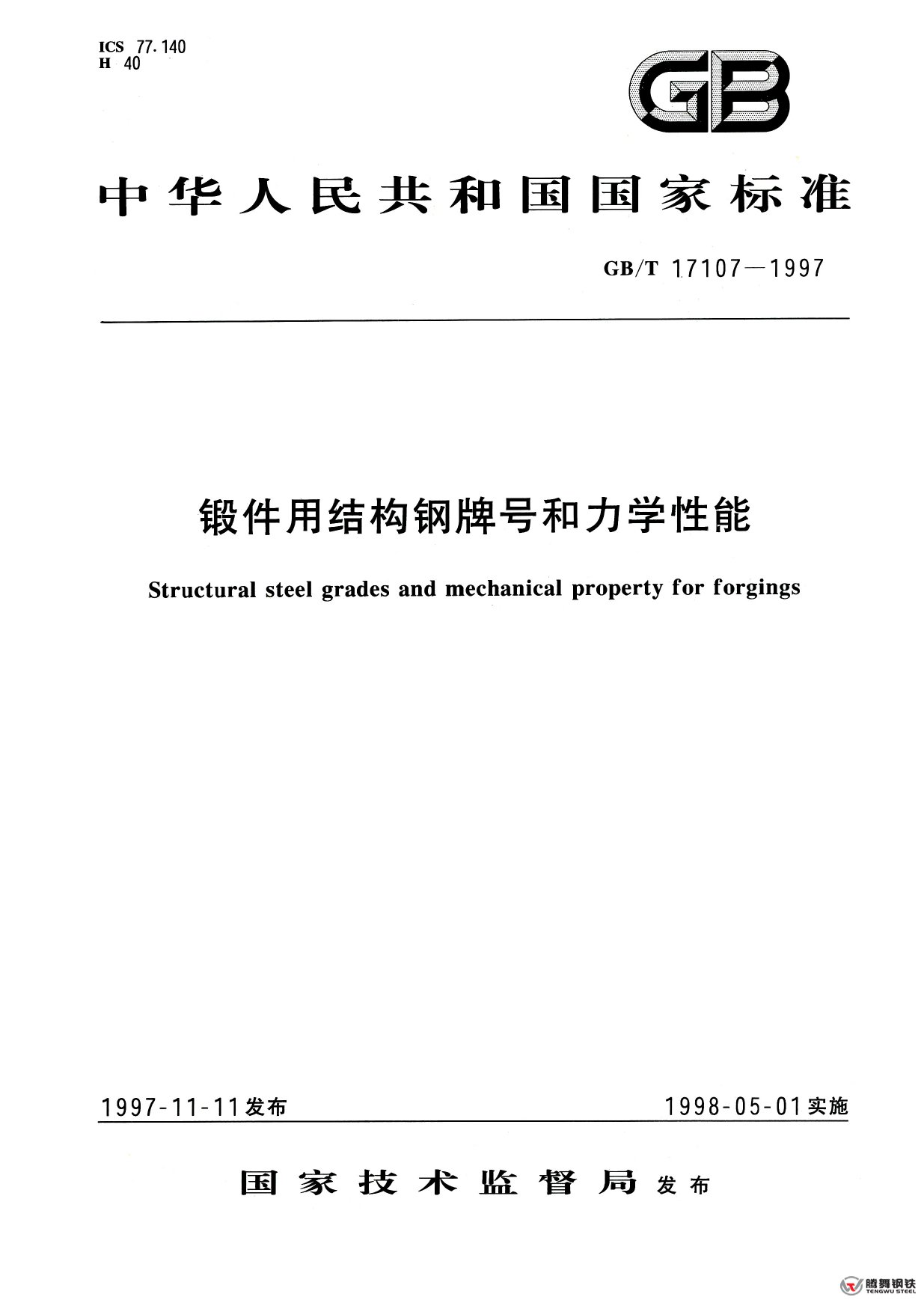 鍛件用結(jié)構(gòu)鋼牌號和力學性能 GB/T 17107--1997