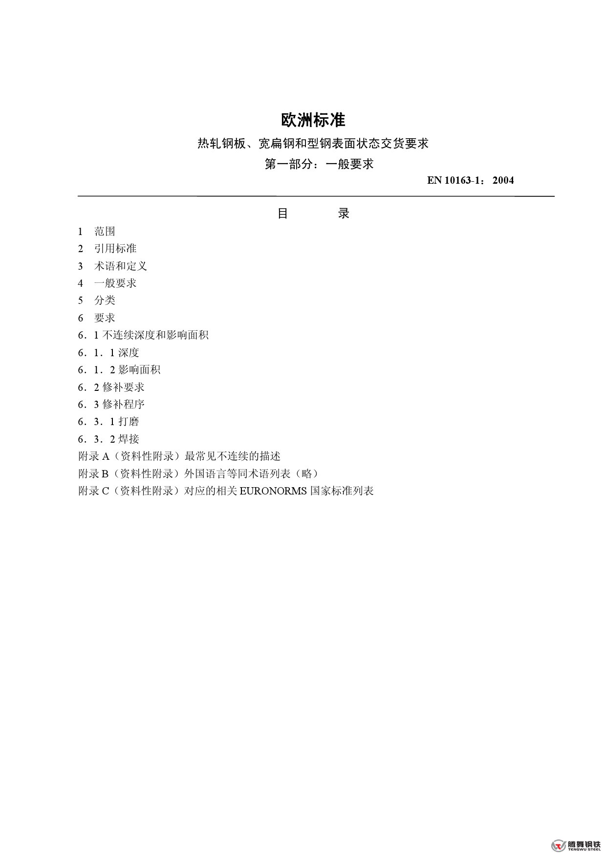 熱軋鋼板、寬扁鋼和型鋼表面狀態(tài)交貨要求 第一部分:一般要求 EN